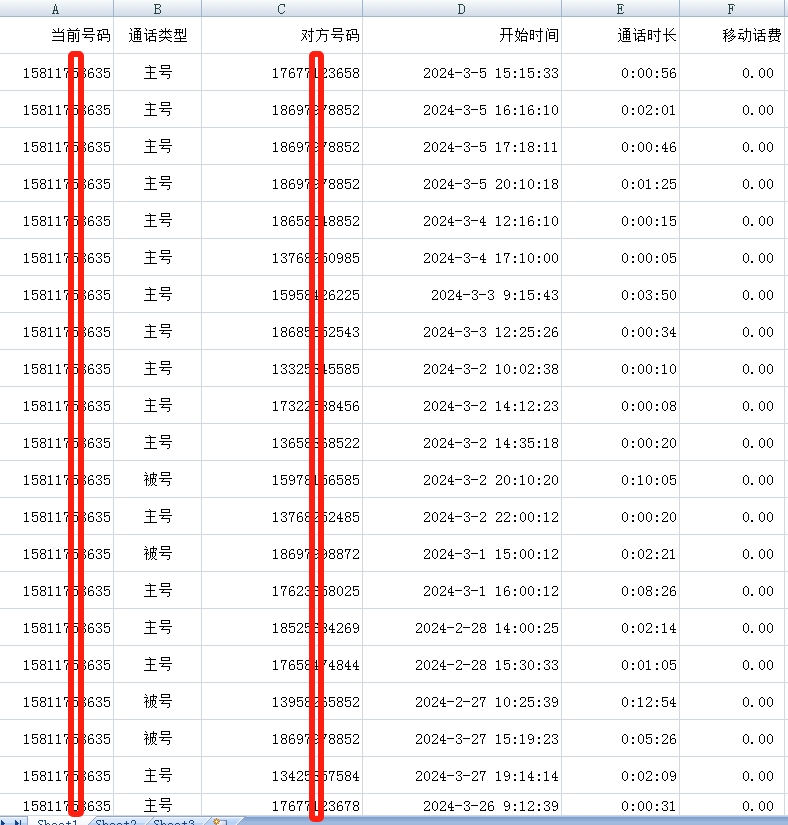 查询手机号码通话记录